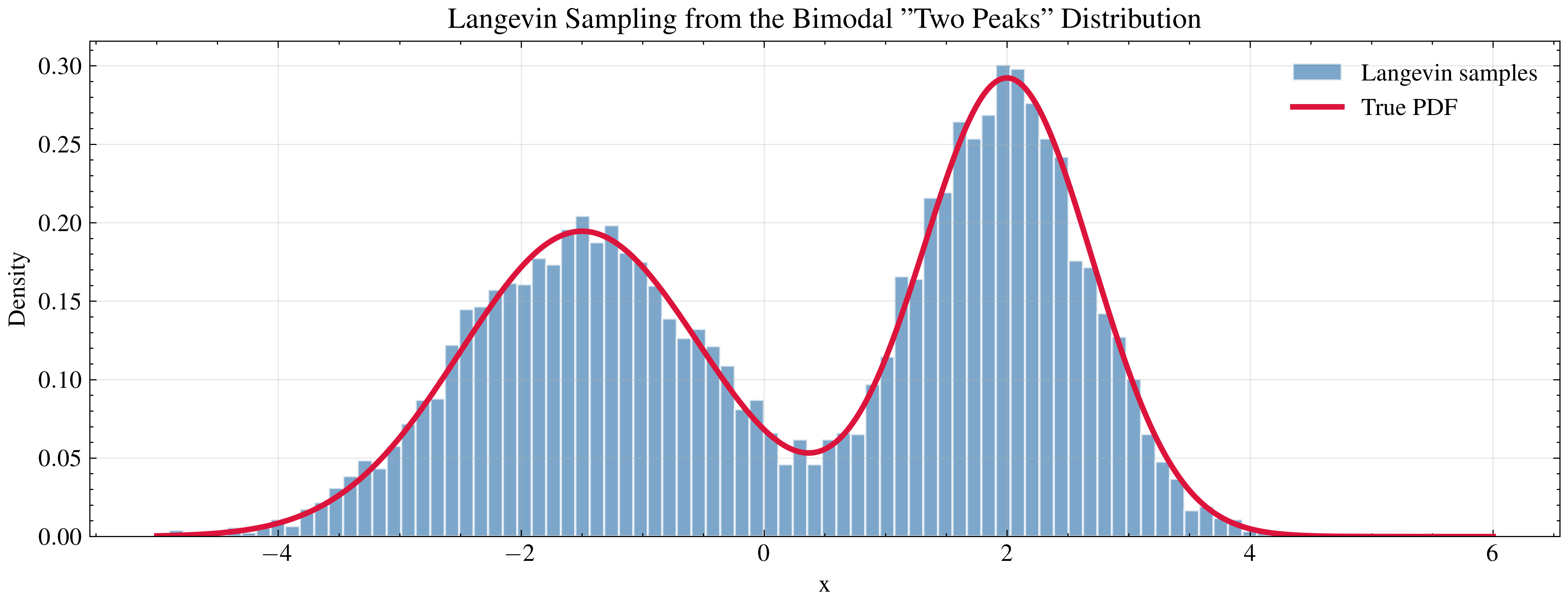 Why does Langevin Sampling work at all? This question leans into statistical physics and stochastic calculus. The theoretical justification comes from the theory of Langevin dynamics and its connection to the Fokker-Planck equation. If you’re curious, that’s where to dig deeper.